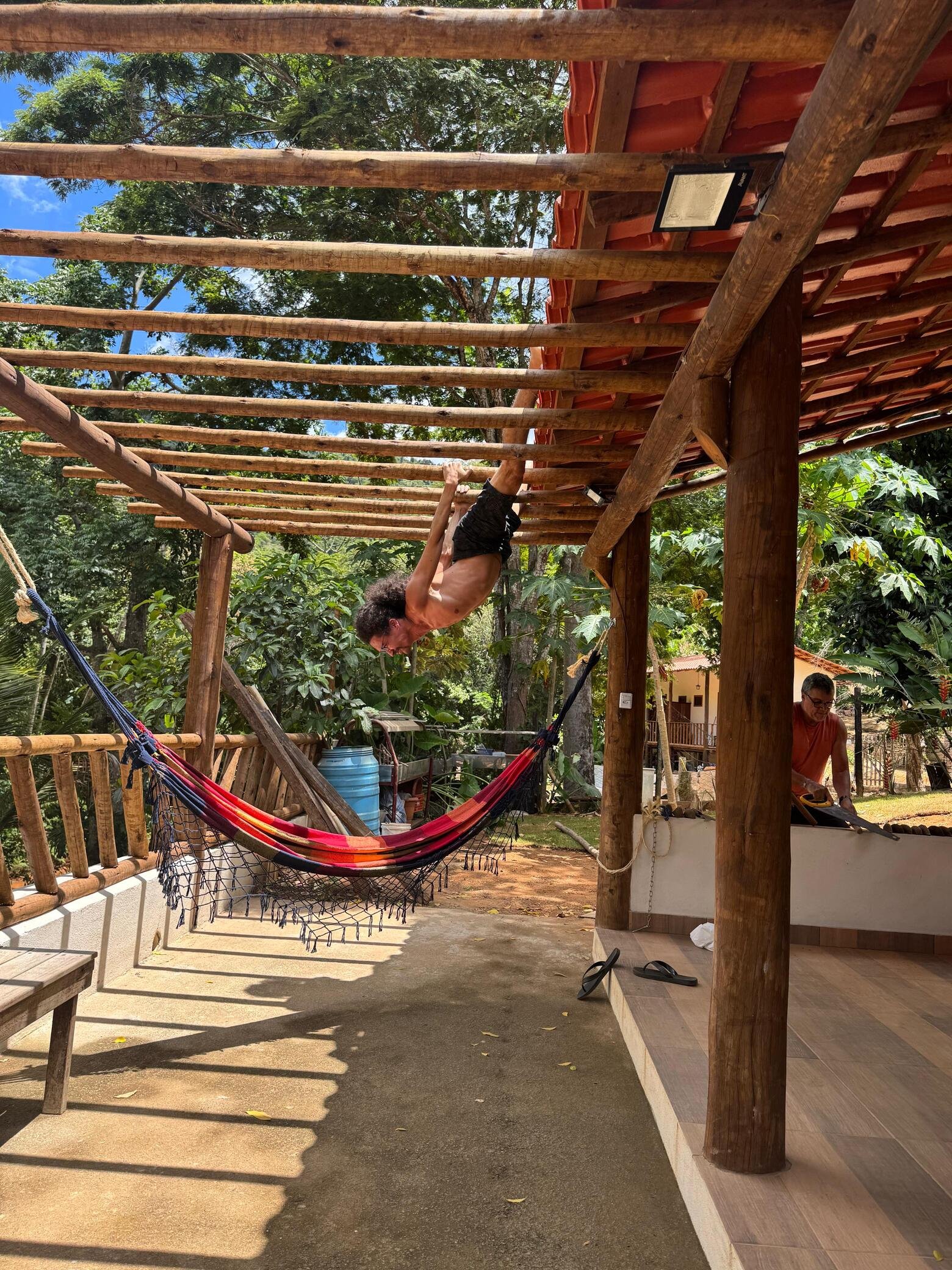 Cabanas, jardins, trilhas, horta, fogueira, redário e sala de práticas. Tudo pensado para acolher o corpo, a alma e o tempo do coração.